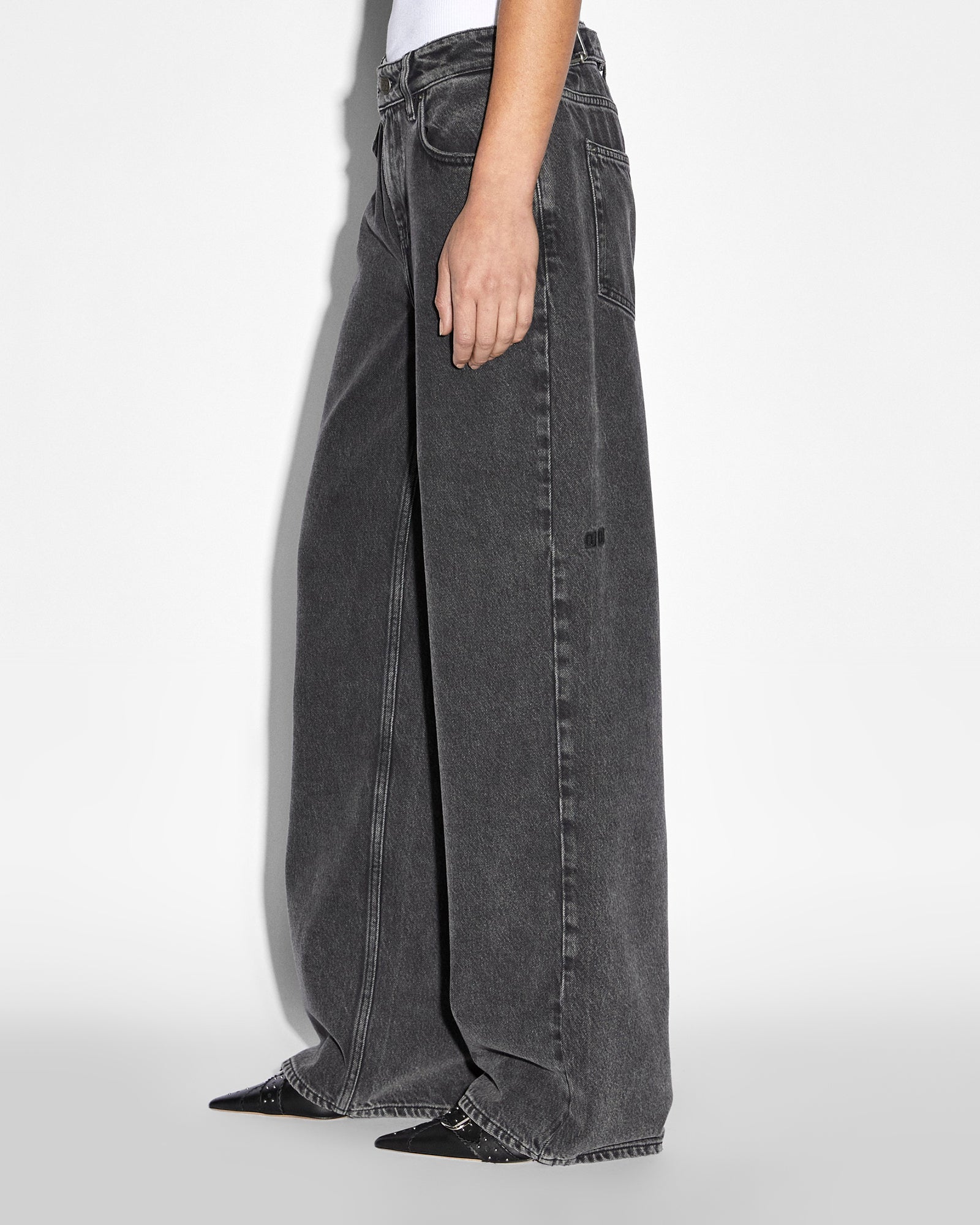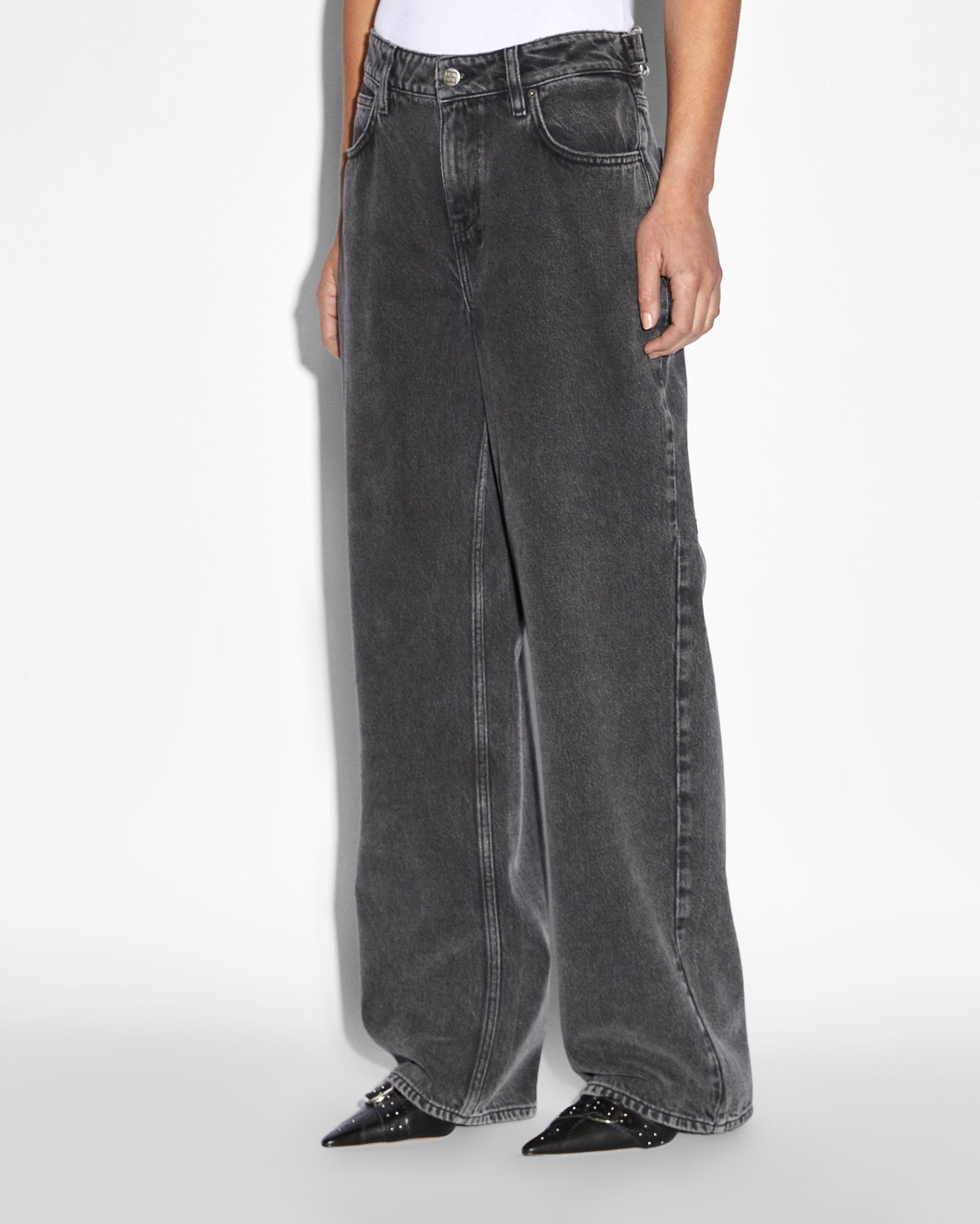The Low Rider Daze Trip is a relaxed, straight leg jean in a subtle acid washed black denim. This low-rise jean has adjustable waist tabs on both sides to allow for the jean to be worn low rise or tighter to sit higher on the waist. This jean has a removable pocket tag on the right back pocket with Ksubi branding such as the 3x4 and t-box embroidery.