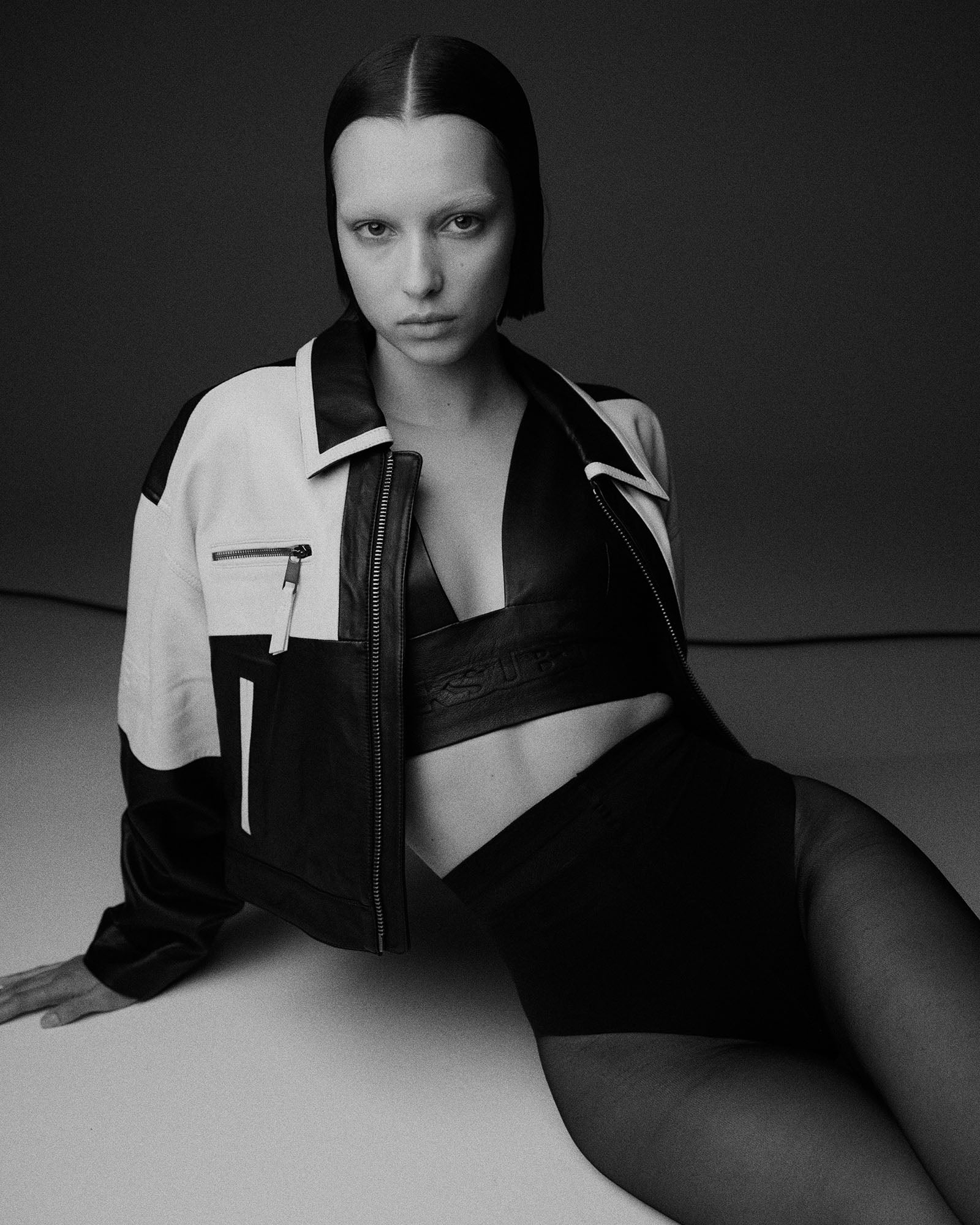 The Emblem Boxy Biker Black/White features an embossed Sign of the Times and Star on the sleeves, embossed signature branding and Ksubi branded hardware. This leather boxy biker jacket is constructed from premium leather with panelling in contrast black and white colourways and features a centre front zip and front pockets with sleeve zip and gusset details.