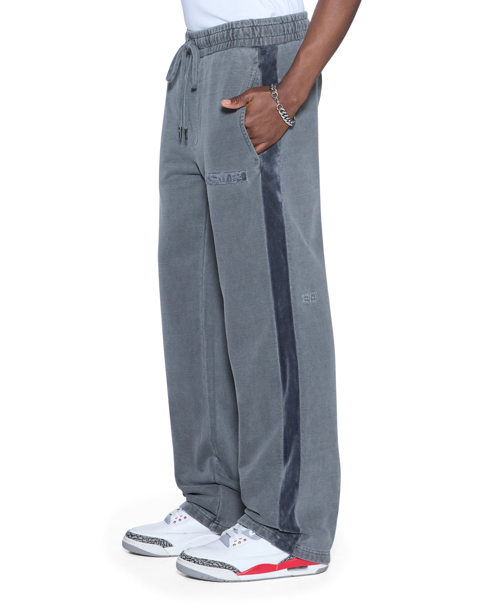 The 4X4 Luxe Synthesis Trak Pant Charcoal is a mid-rise, straight leg track pant with an elasticated waistband and drawcord for all-day comfort. Crafted from premium loopback fleece in a charcoal grey colourway, it features flocked side seam panels with saddle stitching, a Sign of the Times applique logo, and is finished with signature T-box and 4x4 embroidery branding.