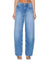 The Empire Jean Liberty Blue is a relaxed straight-leg, regular length jean with a true mid-rise. Made from rigid mid-blue indigo denim with a stonewash, subtle veining, vintage worn-in wear patterns and heavy grinding at the waistband, pockets and hem, it features classic five-pocket styling, anti-silver Ksubi branded hardware, and signature t-box and 4x4 embroidery, with a removable pocket tag attached to the wearer’s right back pocket.
