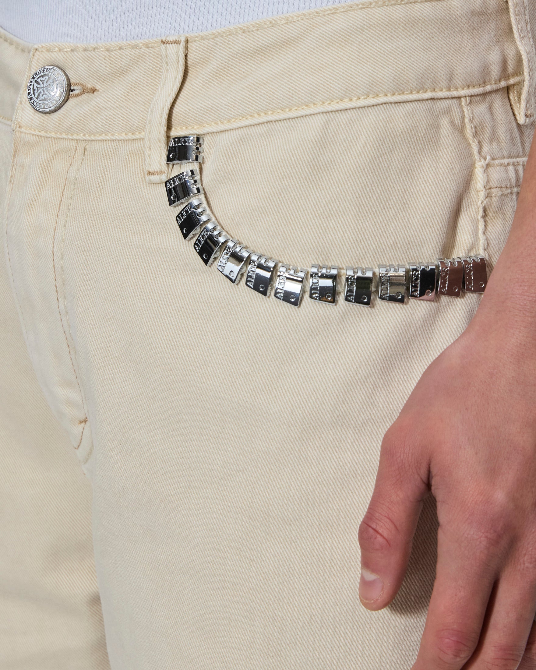 The Toro Ivory is a mid-rise, full-length jean with a relaxed boot-cut leg, crafted from premium rigid denim in a rigid ivory finish. Featuring traditional denim construction, it is elevated with intricately laser-cut leather appliqué's in sharp graphic shapes framing the pocket edges. Finished with T-box and 4x4 embroidery, a custom Ksubi by Alice Hollywood pocket flag, and branded hardware, this style merges classic denim craftsmanship with bold, collectible detailing.