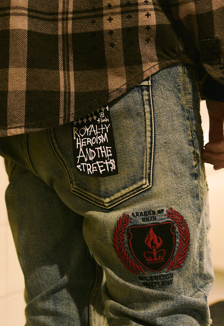 The Maxx Mechanik is an exaggerated straight-leg jean with a long rise. Made from rigid indigo denim in classic indigo blue wash with an applied dirty wax coating, featuring discolouration and oil-blotched stains, itÕs finished with signature T-box and 4x4 embroidery and Ksubi hardware.